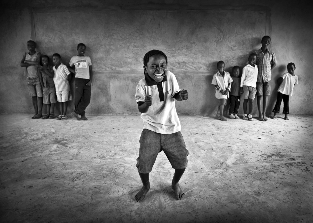This shot was taken after I had been teaching English to a bunch of kids. At a certain moment one of them started dancing in front of me while the others were rather shy and staid in the background. I can guarantee you, it was incredible fun!