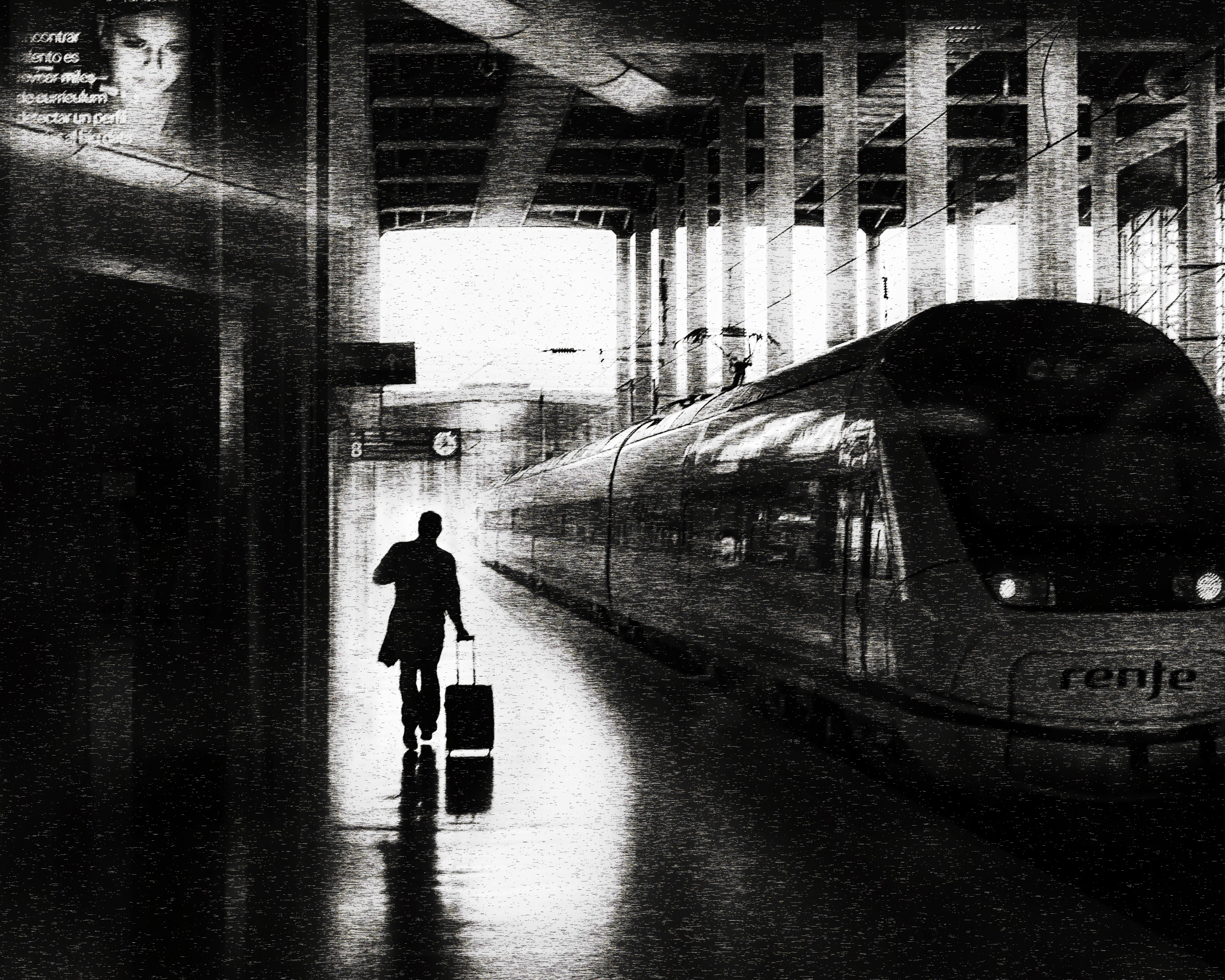 Maybe the “Birds of Peace”. Pigeons are called the birds of peace but on this picture we can see those birds flying around in chaos.  But watching carefully the photo, one can see a boy laughing inside the bus which shows a sense of humour. The black and white tones on the birds are reflecting light and shadows.